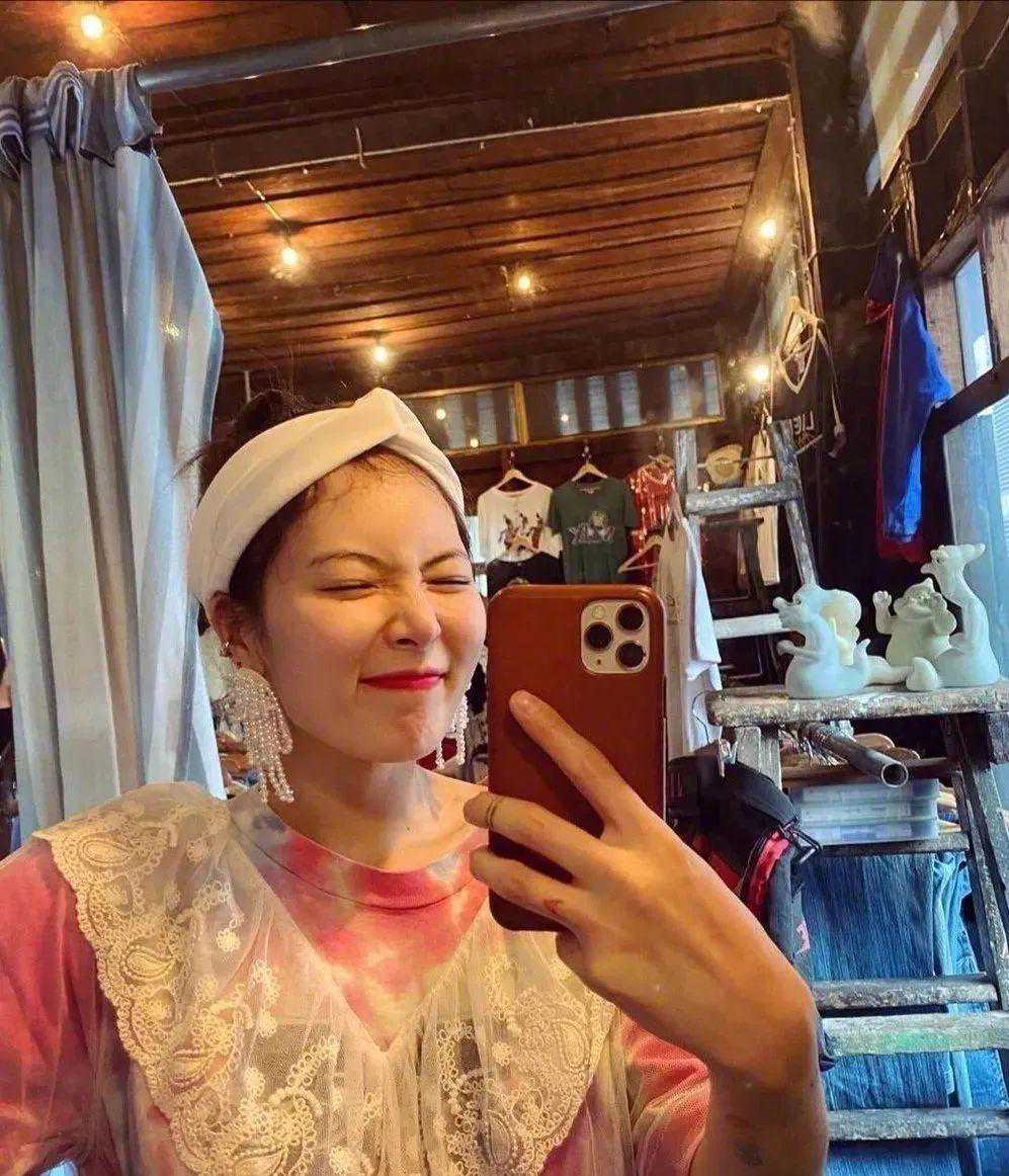 如果再认真箍发的话,像Jennie这样才是最完美的展示戴法,把发带箍在发根,长发披散将整体托高,居然让头顶看起来更加蓬松了?!(就挺秃然的)