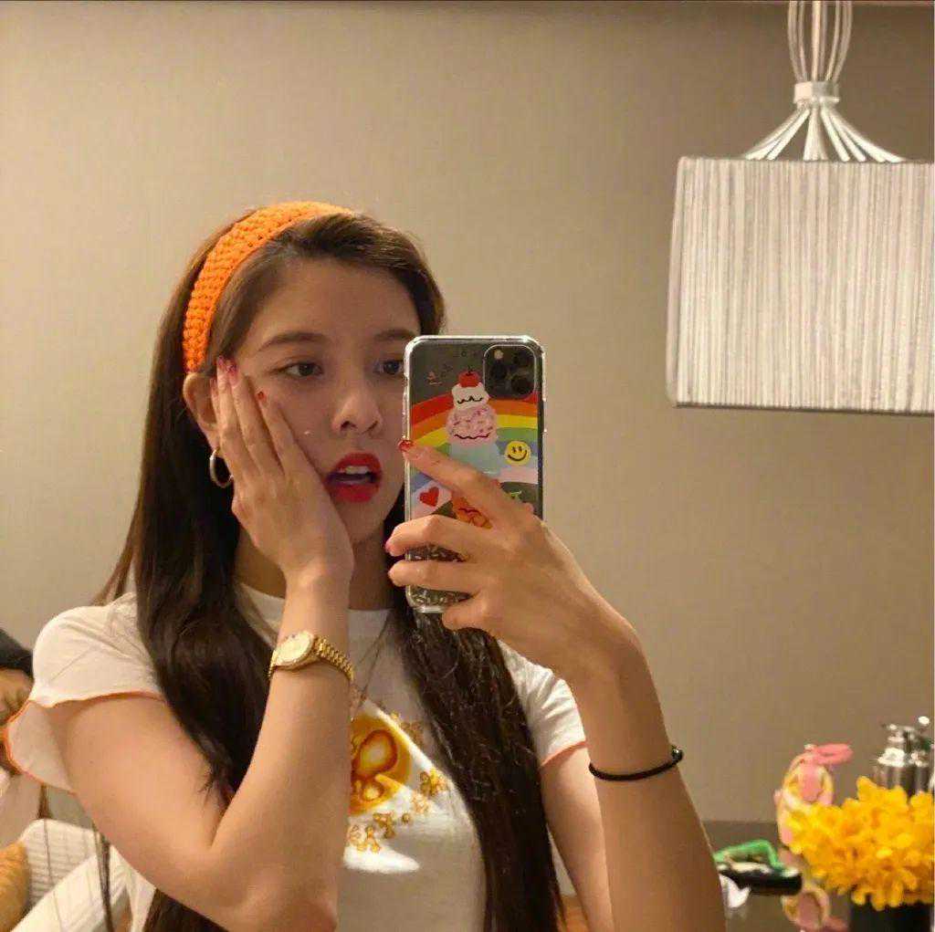 看完南韩泫雅的强势推荐,被号称“中国版”泫雅的cici头上的这款亮橙色编织发带同样引起了芭姐的注意。