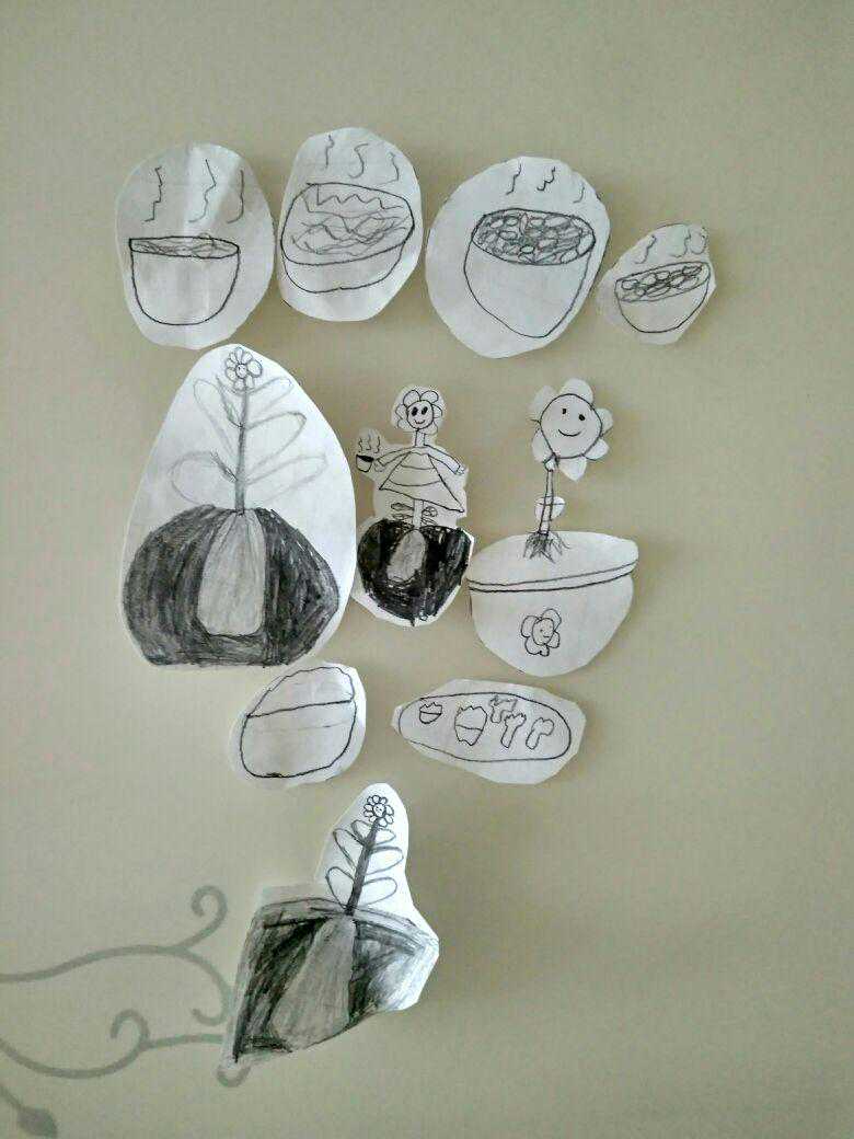 真是难为小宝了,先得一个一个画出来,再就是还要用她那稚嫩的小手慢慢剪出来。