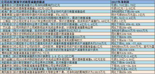今年以来,已有多家公司在近期因巨额商誉减值导致2017年业绩“变脸”,并购标的业绩不达标可能带来的商誉减值风险不容忽视。