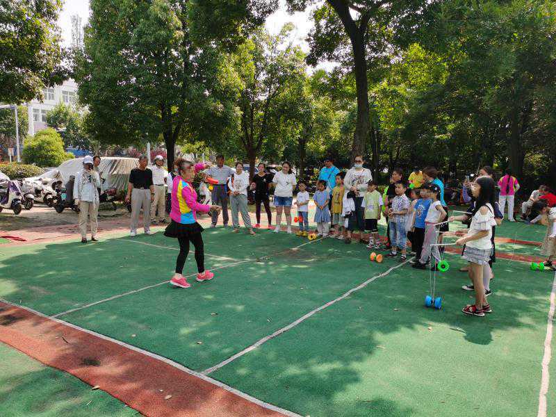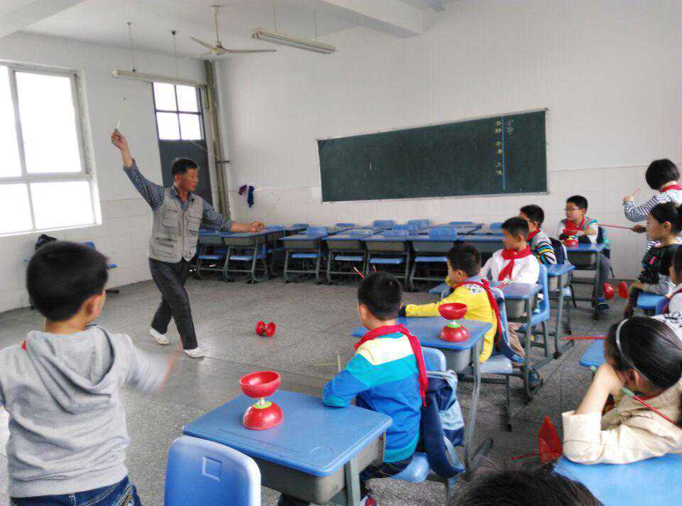 刘荣根在扬州市朱自清小学为小学生双轮空竹培训