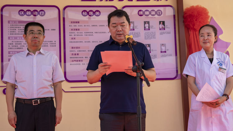 新密市曲梁镇镇长樊晓鹏致辞。他说,由卫生院和省直三院联盟的整形美容科落户于曲梁,是曲梁镇医疗卫生开拓创新的又一个新举措。希望医院的整形美容科站在新的起点上,全方位开展医学美容技术的普及推广,不断提高曲梁辖区群众的健康审美水平,为建设“健康曲梁”注入更多“美”的元素。