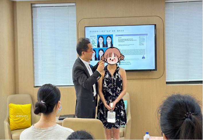 在授课过程中,崔教授与到场的求美者们亲切互动,并通过生动的讲解向大家介绍了“未来”整体设计面部年轻化操作理念,用“加减紧亮弹”五个字诠释医美新思路,得到了大家的热烈反响。