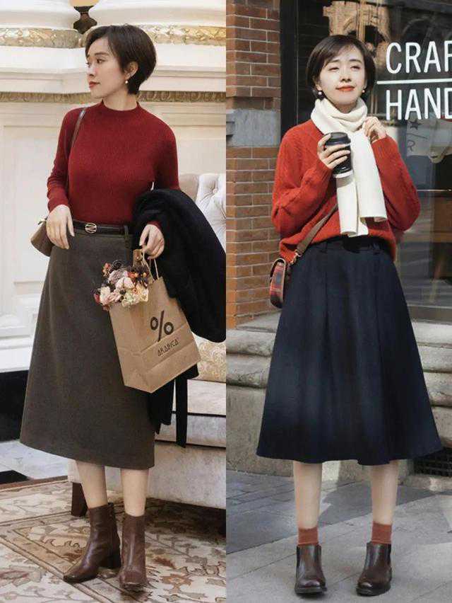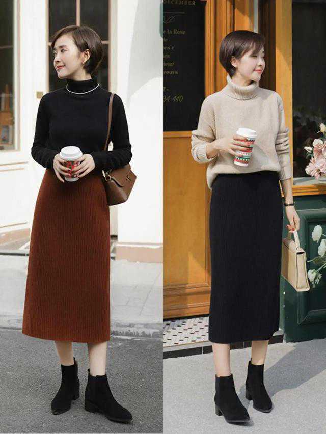 首先,我们要选择一款适合自己且容易打造出高级感的半身裙,最好还要足够防风保暖。这时候,我们就可以选择毛呢半身裙和针织半身裙这两款。