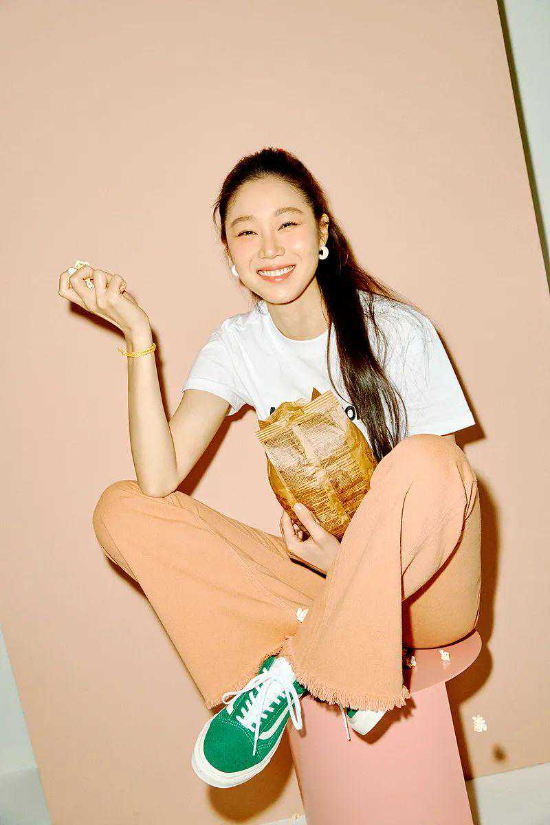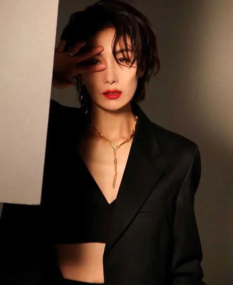 孔孝真属于典型的鹅蛋脸,中庭长鼻基底低,所以法令纹会特别明显,但是姐姐完全不在意,反而把“缺点”变成了独特标志,模特出身的她,身材比例更是优越,妥妥的衣架子。