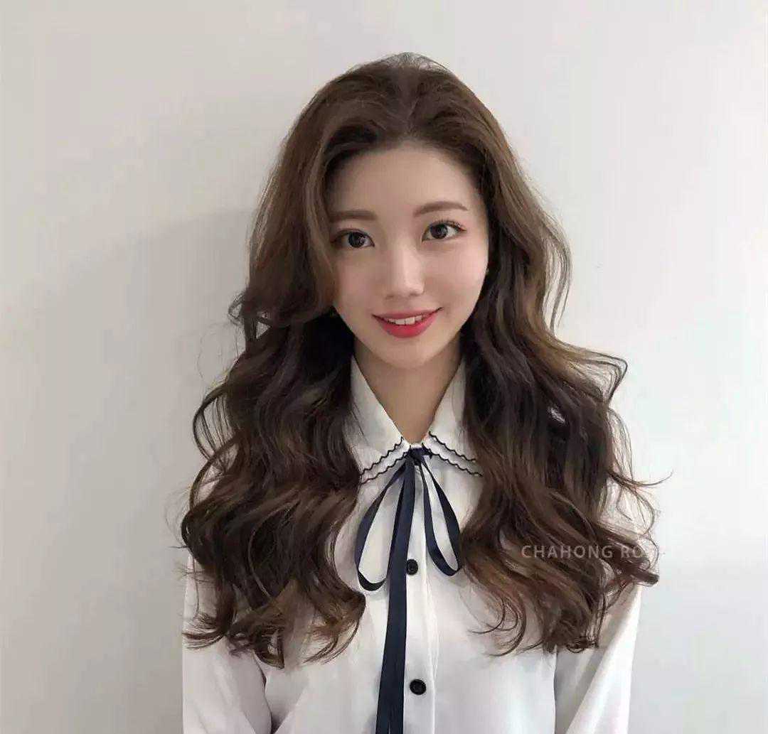 亲和力十足的一款韩系刘海,体现女性柔美感,发型看起来简单而随意,搭配妩媚波浪卷,非常知性大方。