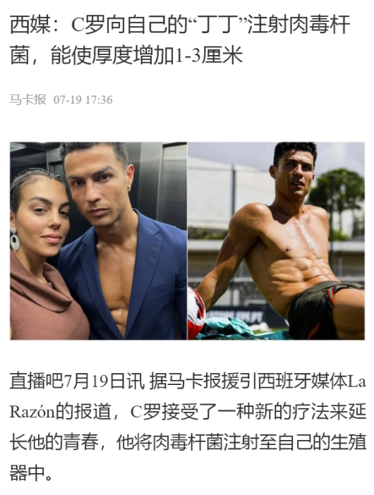 据西班牙主流媒体《LaRazón》报道,他最近一次做医美,是给隐私部位打肉毒素。