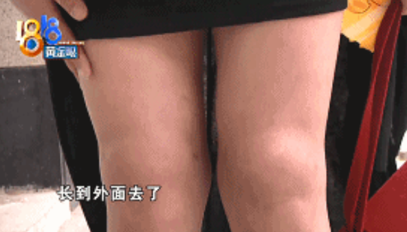 小练:一边粗一边细,你看这个肉都往外长了,长到外面去了,做失败了,本来以前我腿是直的,现在都变歪了。做完之后腿很痛,两个月之后腿就开始歪掉了,留疤,她跟我说不留疤的,手臂也有疤。