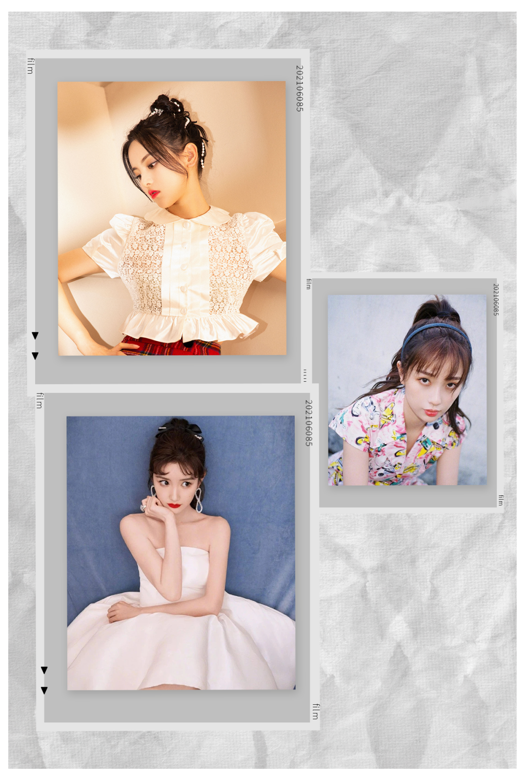 章若楠这种就是比较标准的半扎发,扎完后记得用手拉一拉头顶的头发,打造头包脸效果更显脸小哦。
