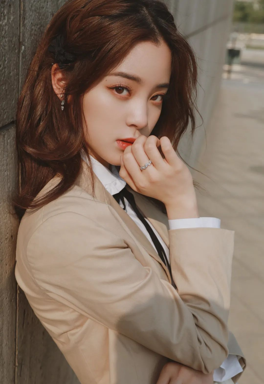 在此基础上,也可以用蝴蝶结给颅顶加成。既能够把整个脸的重心上移更显脸小,还能够注入一股富家大小姐的气质,真的绝绝子!
