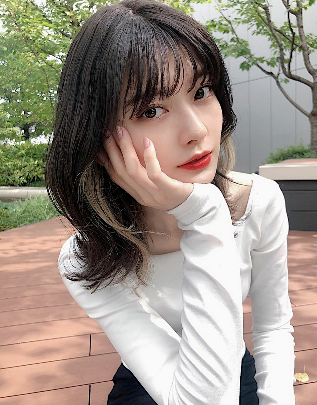 结合今年爆火的漫画刘海选择直发lob。有点长版的lisa同款既视感,但是Lisa的短发造型并不适合大众,中长的lob就很好的中和了这点,偏胖的妹妹也不会显得脖子短了。
