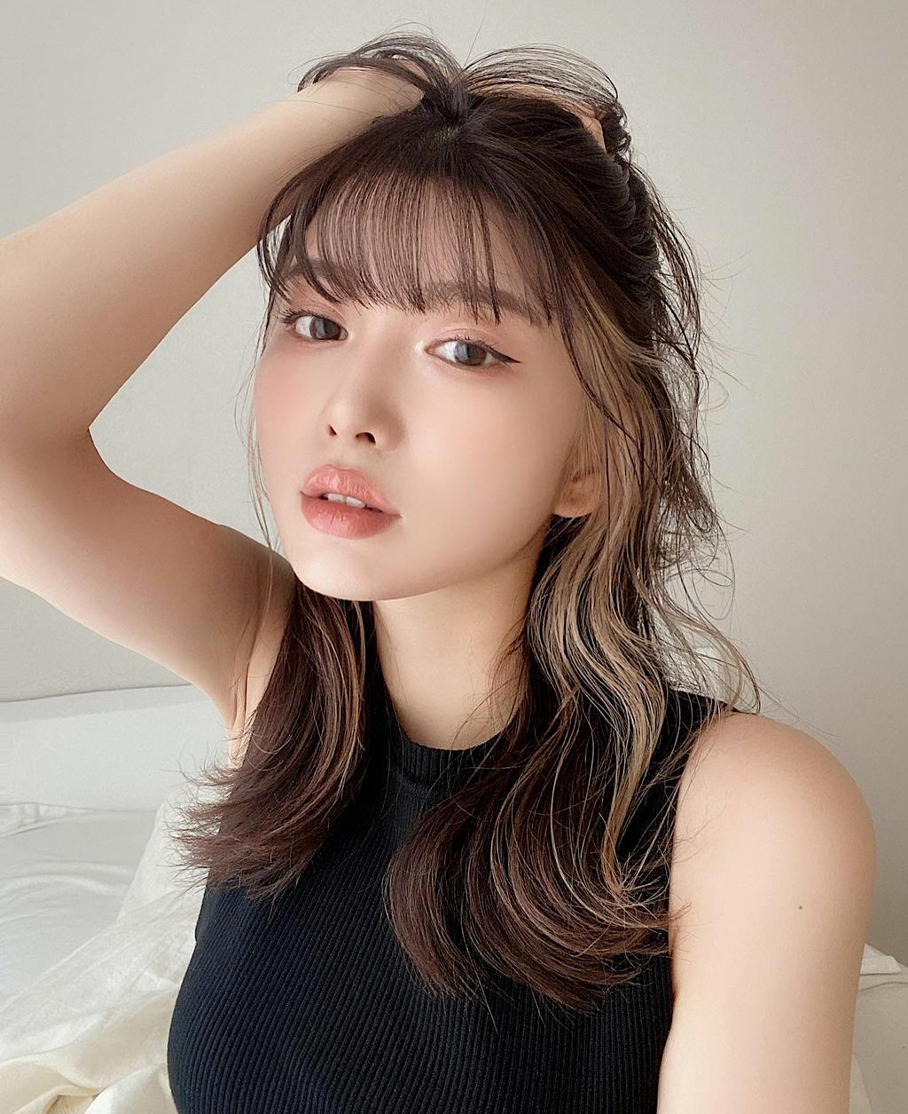 谁说挂耳染一定是有杀伤力的酷妹才能驾驭的,大眼甜妹搭配空气刘海,加上人鱼尾巴的温柔卷,甜度满分,