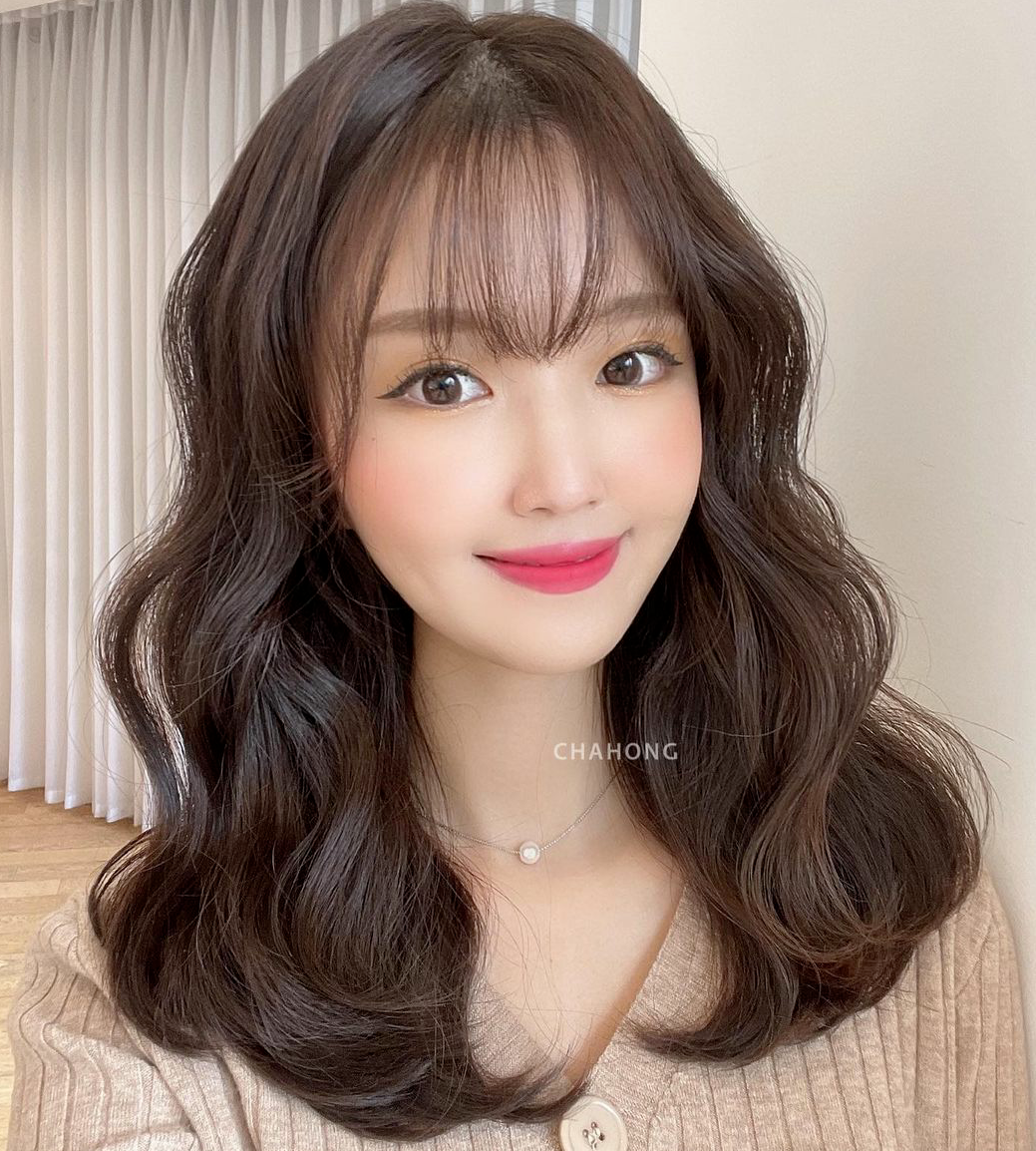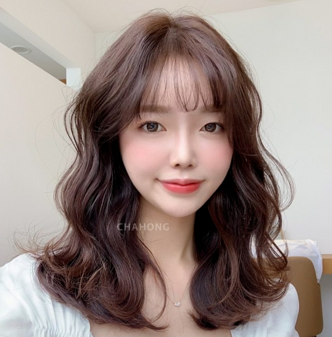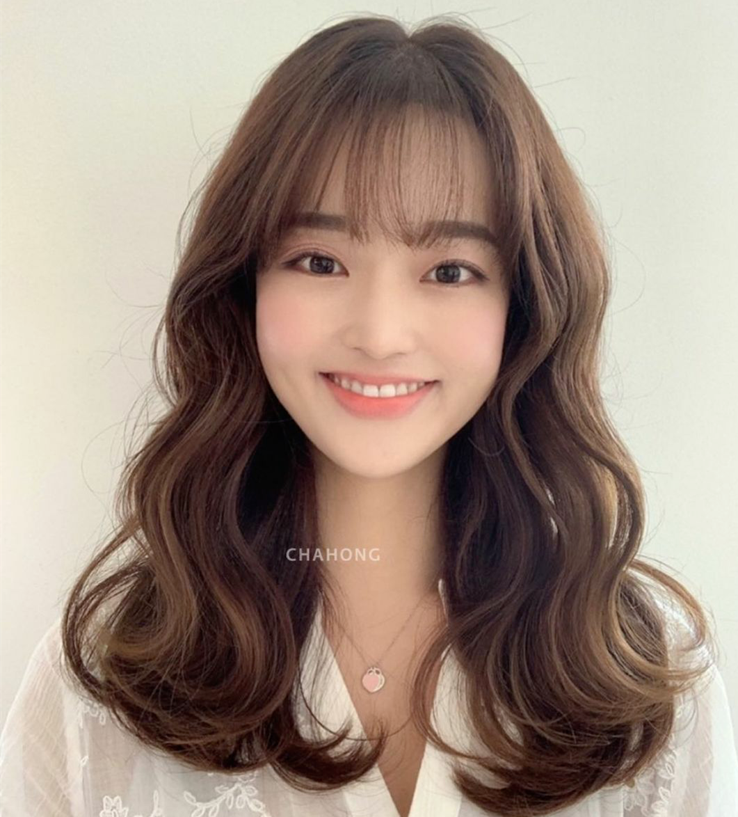 温暖的秋冬发色与大S波浪弧度的蛋蛋卷相结合,是小圆脸妹妹们的福音,可爱减龄,根据不同的脸型选择刘海即可。