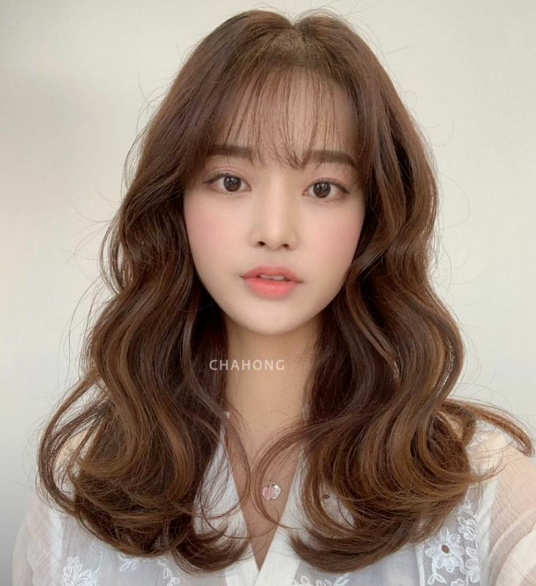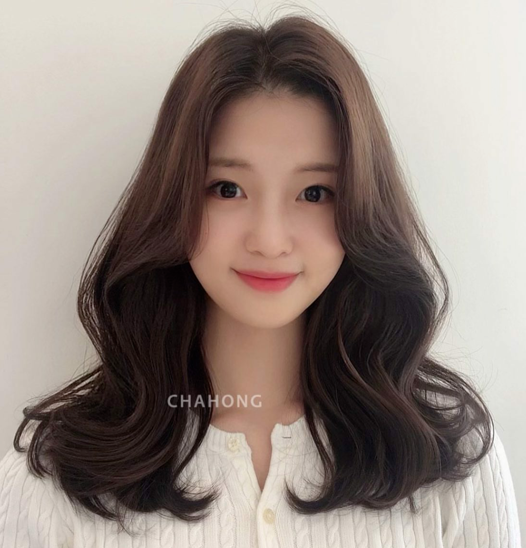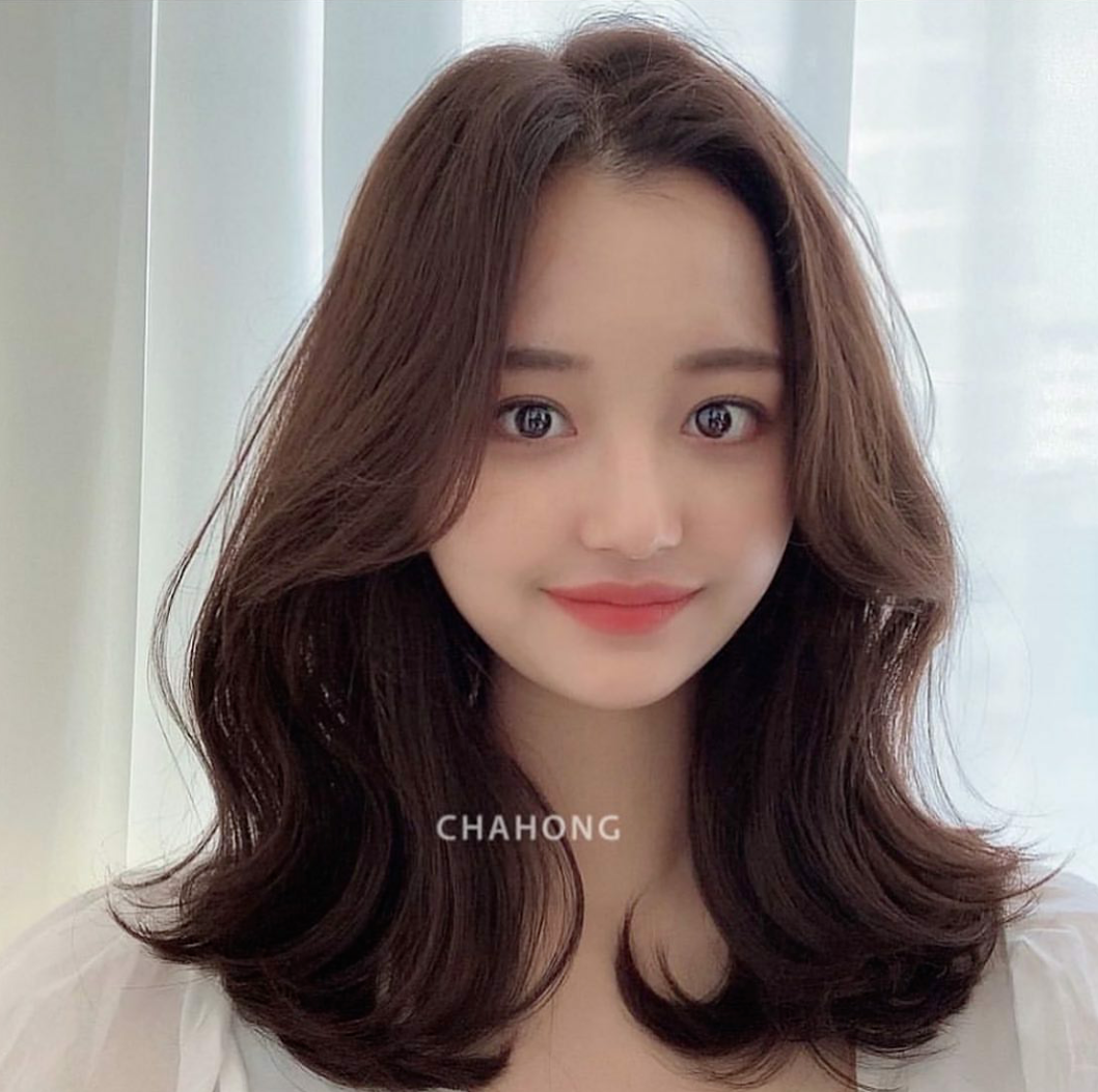 温暖的秋冬发色与大S波浪弧度的蛋蛋卷相结合,是小圆脸妹妹们的福音,可爱减龄,根据不同的脸型选择刘海即可。
