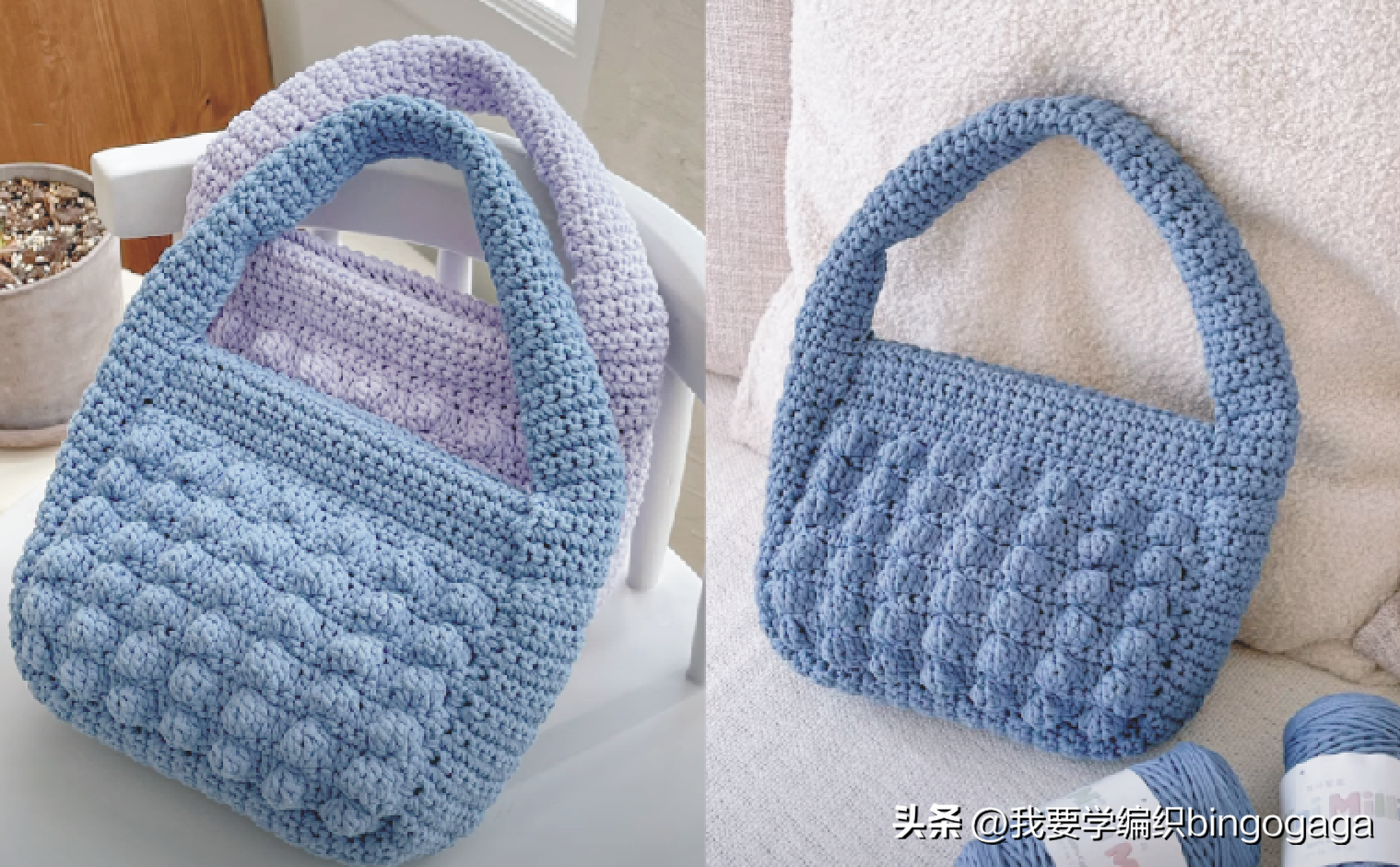 很多织友都说,自从爱上了钩包包,家里的包包越来越多,而且也不爱买包包了,都是使用自己钩的包包。确实,手工包的颜值一点也不弱于商品包,而且很多手工包的价格是远高于商品包的。好了,回归主题,今天我们学习的是一款枣花手拎包的钩法,示范用线:空心棉,4.0mm的钩针。