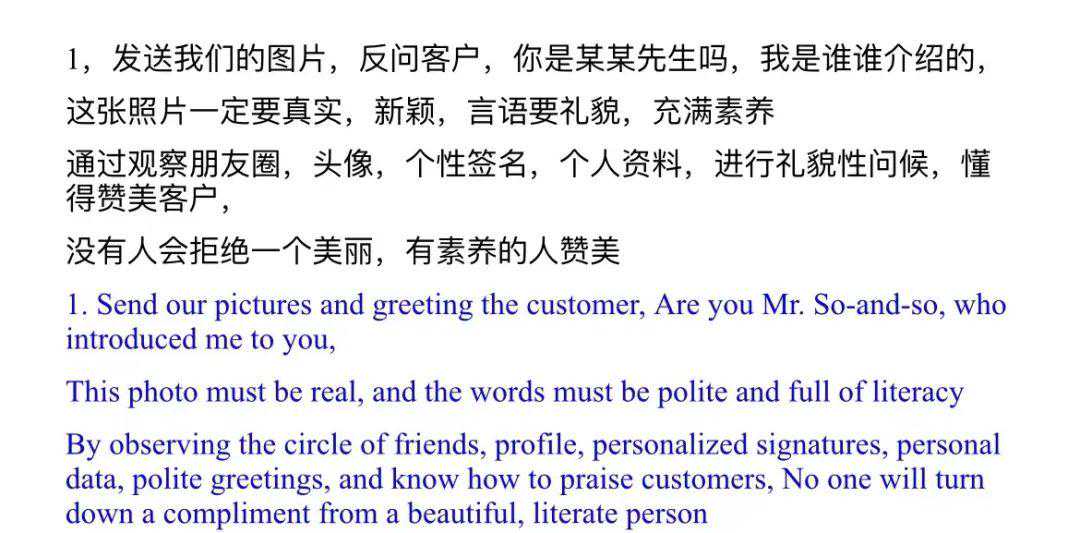 复盘整个所谓的“业务专业知识”及“聊天范例”,其中的套路并不新鲜,但精准锁定目标客户后,通过“欲擒故纵”来打消受害人的警惕性,是他们的常用策略。