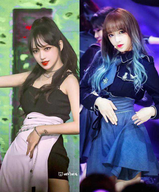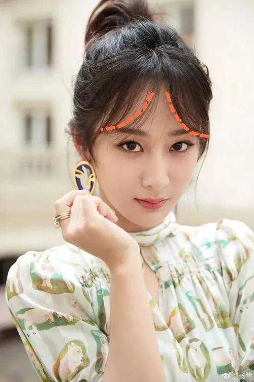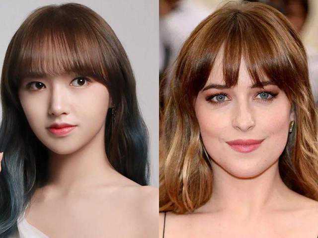 对比程潇,脸型倒三角+五官特点偏向甜美系,她留空气刘海儿可爱少,精致甜美多。