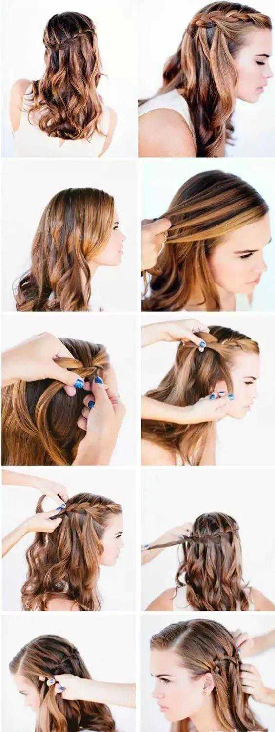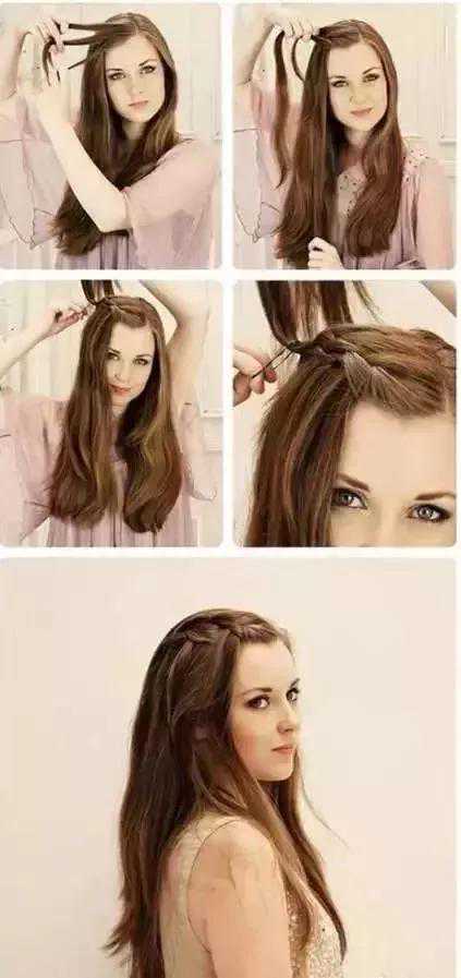其实我们的刘海也可以用来编花辫,我们把较多刘海的那边分成三股头发,然后编一个麻花辫,接下来往另一边的刘海一路编过期去,中间要不断的增加头发,最后在头上围成一圈漏网花编,和童话里的小仙女一趟的发型,而且头发是不用扎起来的,就是迷人的披肩发。