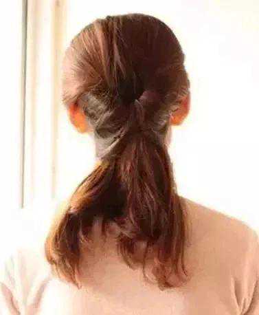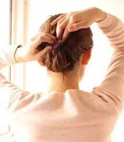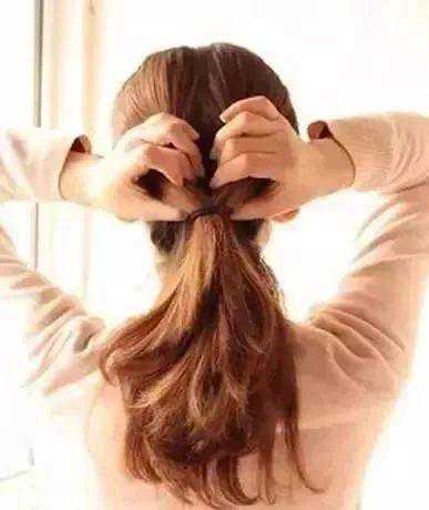 扎好马尾后我们自马尾的中间弄出一个洞,头发扎的比较松的会很好弄,要是扎的比较紧就会有点困难了。