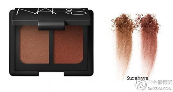 Nars是大家心中典型的美式彩妆品牌,而后被日本护肤巨头资生堂收购也是出乎很多人意料。被收购后的Nars粉质有所提升,飞粉现象改进不少。其双色眼影和腮红一样也是明星产品,不少跳跃、素雅的配色在nars双色中都可以找到。这盘surbaya可能更加适合成熟的职场人士或者化妆技能娴熟的妹子们。相比普通大地色,更显红色金棕。上乘的显色度和轻微细闪上眼有放大双眼的效果,温暖深邃,适合秋冬。虽然粉质不算是双色系列中最出众的,但画法和另外一盘热门色号CORDURA相比更容易掌控。