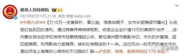 位高权重的许爱莲生活奢靡,曾多次要求他人为其购买冬虫夏草含片,坦然收受企业主赠送的价值17.4万元的冬虫夏草含片6盒。爱美的许爱莲,还接受企业主为她支付干细胞抗衰的治疗费用。一位长期通过许爱莲承揽绿化工程及结算工程款的某企业主,在向她行贿共计200余万元的同时,还投其所好,专门为她安排了间充质干细胞注射(据称是目前最有效的抗衰老疗法,刺激细胞产生胶原蛋白达到美容功效)。