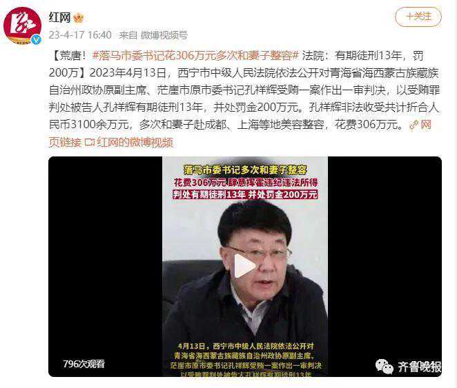 2023年4月,西宁市中级人民法院对青海省海西州政协原副主席、茫崖市委原书记孔祥辉受贿一案一审判决,以受贿罪判处孔祥辉有期徒刑13年,并处罚金200万元。