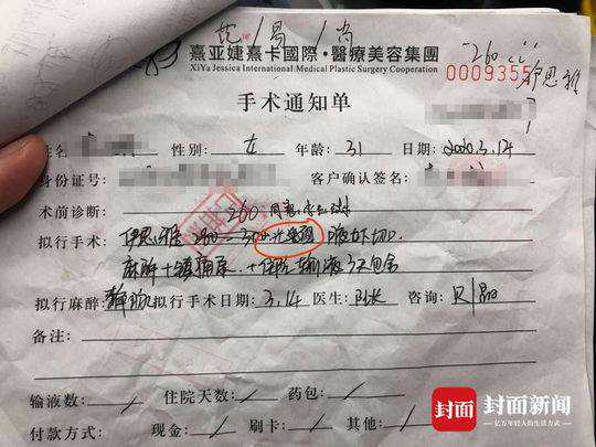 她告诉记者,随后在翻阅手术单据时,她才发现单据上的那一处涂改,也就是“毛”被改成了“光”,“毛面假体和光面假体是两种不同的假体,毛面要比光面材质好很多,当时我签字只是确认修改假体的大小,并不是同意换假体材质,这是医院偷换并涂改的。”