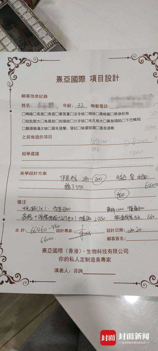 今年3月8日,31岁的李小姐在朋友介绍下,来到熹亚医美做假体隆胸手术,她提供的单据显示,这次隆胸手术共计收费6.6万元,包括填充假体费用、手术费和住院费,通过按揭分期支付。
