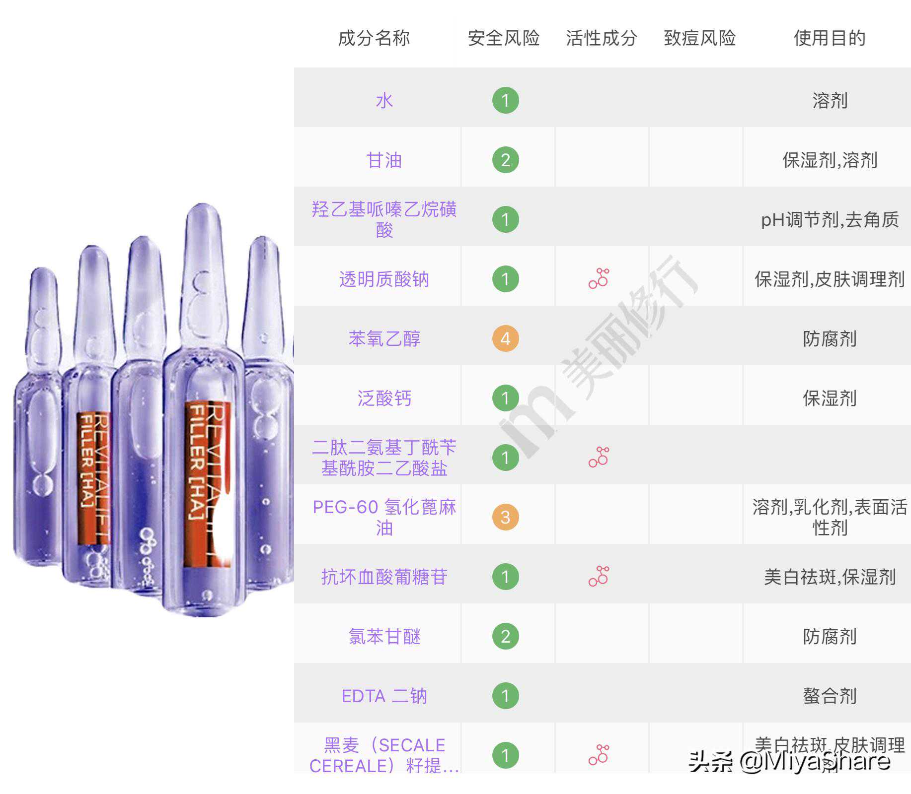 其次,并不是所有的安瓶都没有防腐剂。就拿前面的欧莱雅透明质酸安瓶来说(真不是黑欧莱雅),成分中明显存在防腐剂。