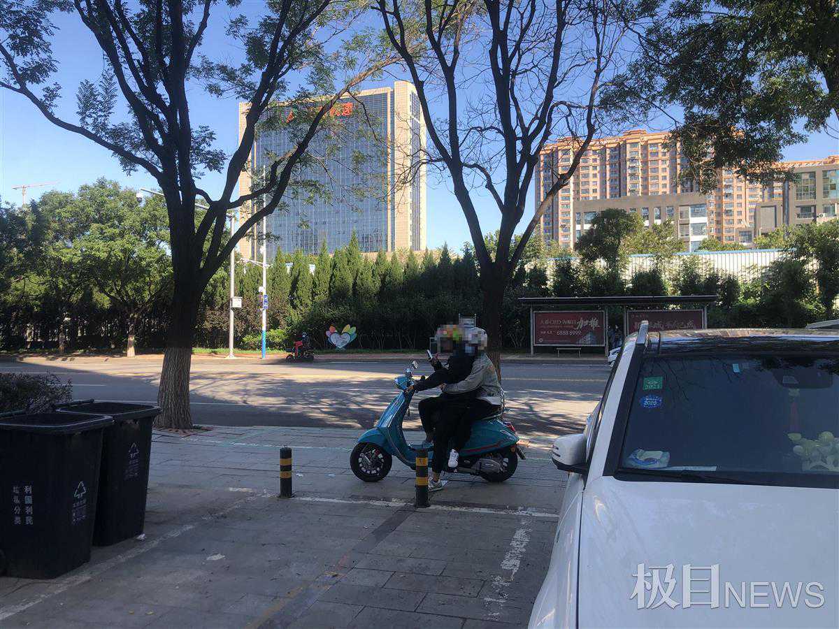 两个年轻人骑着电动车来现场拍照。(极目新闻记者丁鹏摄)
