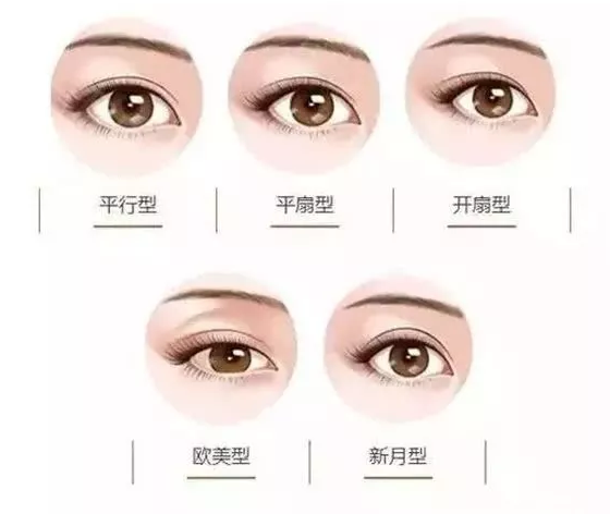 拿眼部整形来说,双眼皮类型繁多,各有千秋。平行端庄内敛、开扇传统秀美、新月俏丽古典、欧美野性奔放。