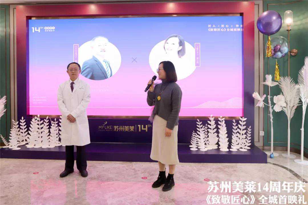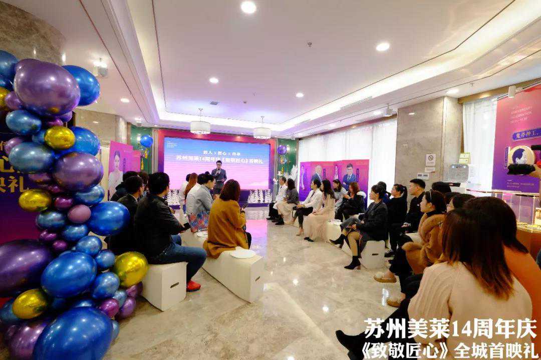 11月30日,苏州美莱14周年庆《致敬匠心》全城首映礼浓情上演。主创参演团队苏州美莱于加平教授、郭强主任、朱飞玲主任、孙贤宝主任与钟苑、黄兰英、谢晴容、冷赟玲等匠人一起联袂出席,近距离与苏州媒体代表、求美者分享《致敬匠心》台前幕后的故事,现场气氛热烈,观众掌声不断。