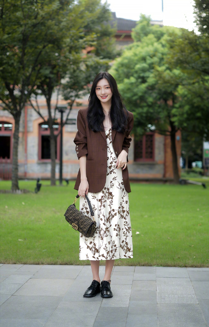初秋穿衣既要hold得住温暖,又要保持得了风度,夏季的碎花裙就是首选。西装的帅气与碎花裙的优雅完美地结合,不管是职场OL还是日常穿搭都很合适,西装的中性感和碎花的小女人气息完美的融合实现了1+12的效果。