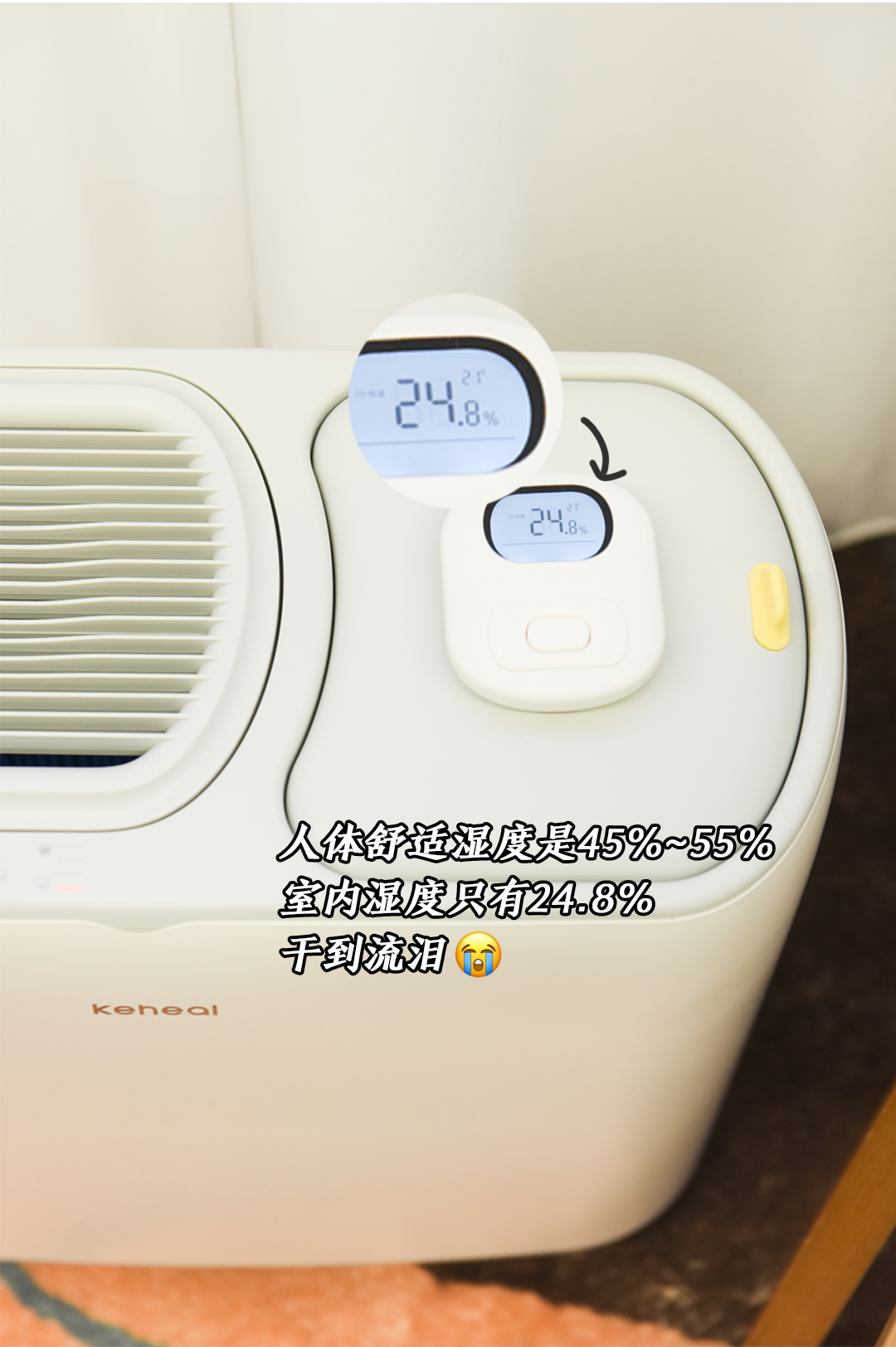 因为加湿器一般放在房间角落,它周围空气倒是湿润但是离远点就不行。科西独特的双温湿度感应就解决了这个问题。