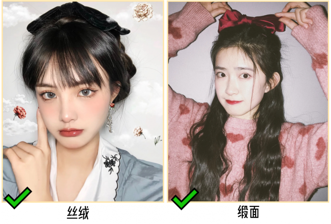 最和谐的方法还是按照发量来吧,发量蓬松就戴大的蝴蝶结,不会显得突兀。