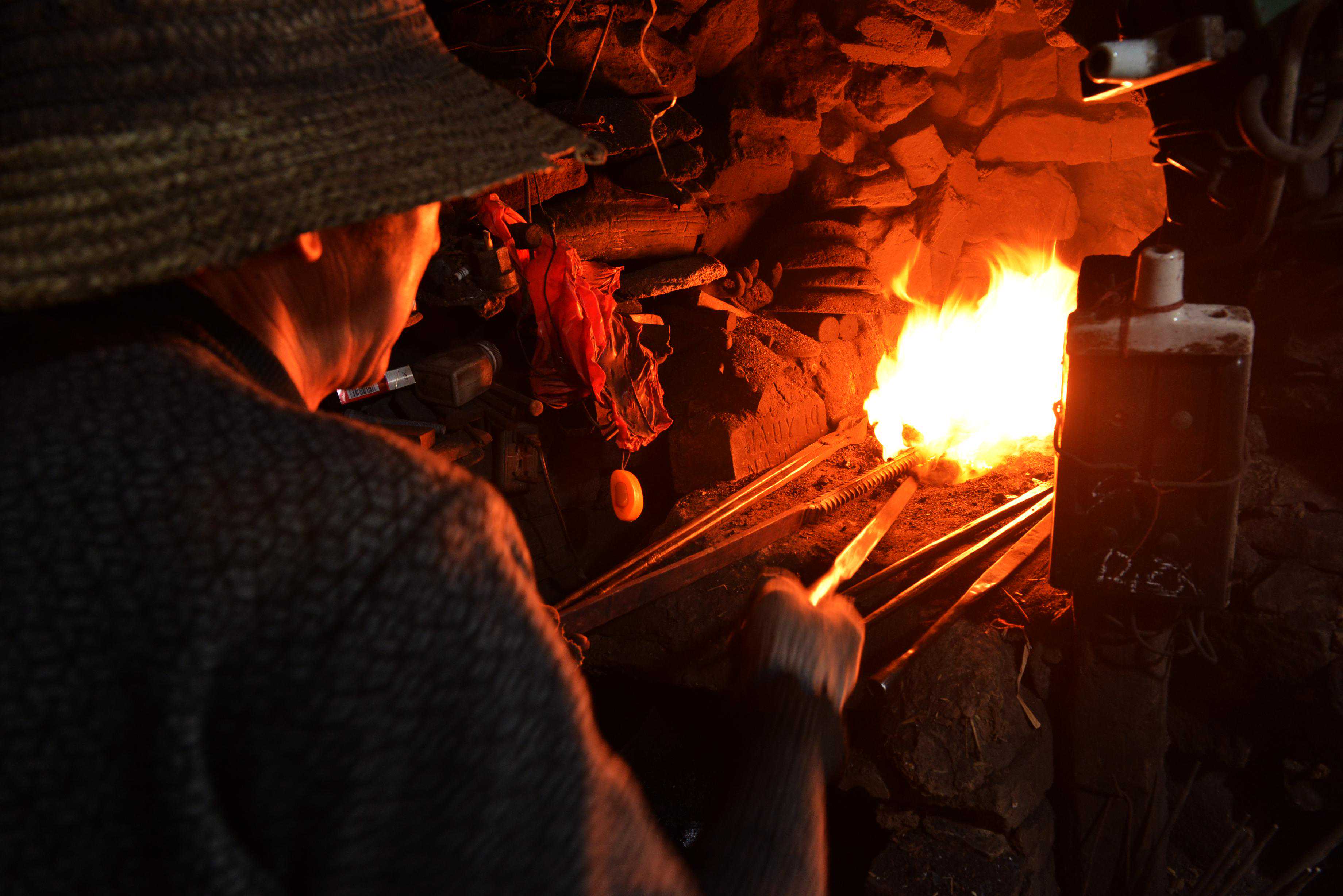 只见老太太一次接一次捋过火红的铁杖,一次接一次按压王大眼的身体各个部位。燕窝、眉心、耳后、人中、心口、肚脐、手心脚心……。最后一把“火”没有按压,而悬顺脊柱捋到腰上。此时铁杖火色暗了许多,老太太顺手又把铁杖插到火炉中心。