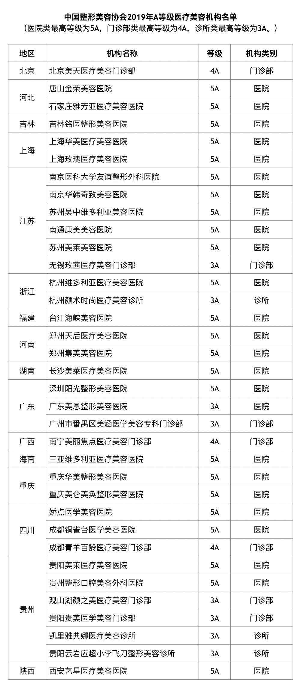 2016年以来,中国整形美容协会共评价出51家5A医院,23家4A医美机构、39家3A医美机构。这些机构的情况可以在中国整形美容协会的官方网站查询到。