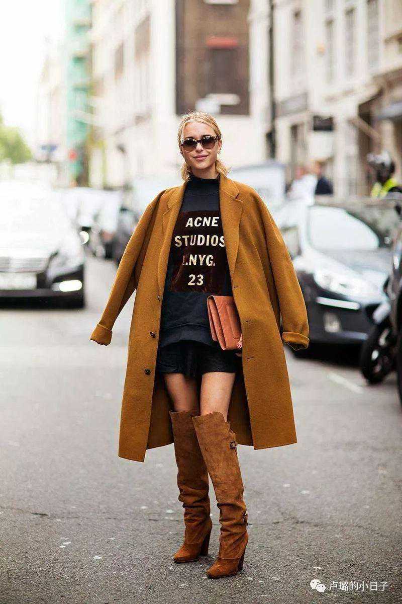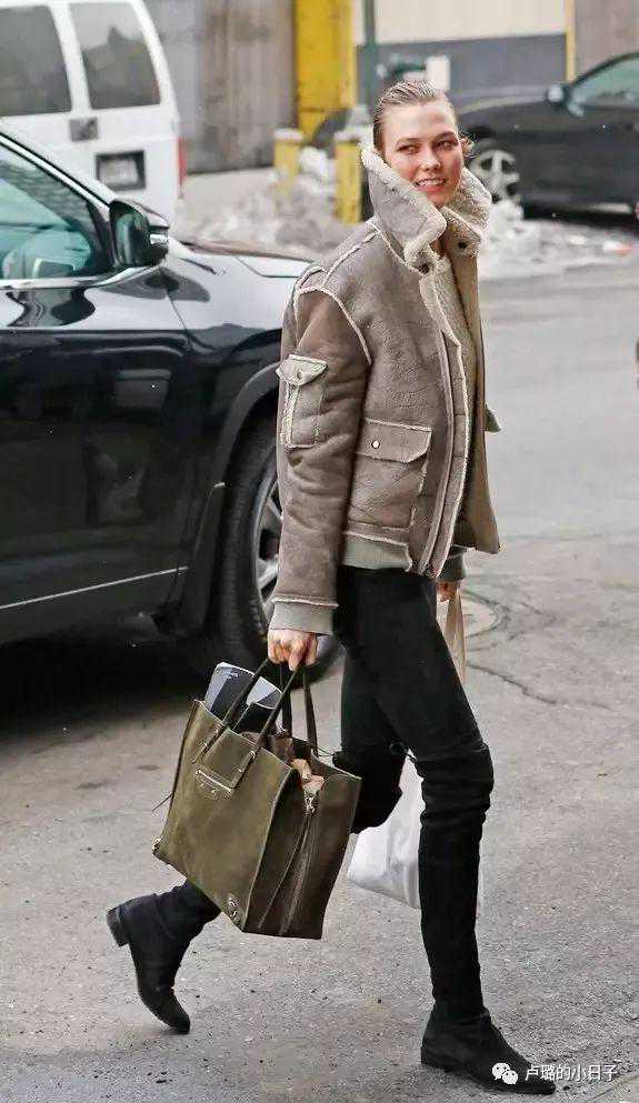 甚至可以说是衣柜里随手的外套和紧身裤子都能满足你出街的要求,尤其是这种比较厚的鹿皮短外套搭配鹿皮过膝靴看起来更加保暖时尚。