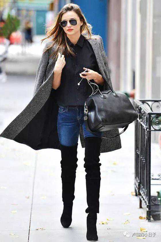 其实,想要把过膝靴穿得好看最简单的就是露出一截大腿来,不露腿和露腿真心是有点差别的。