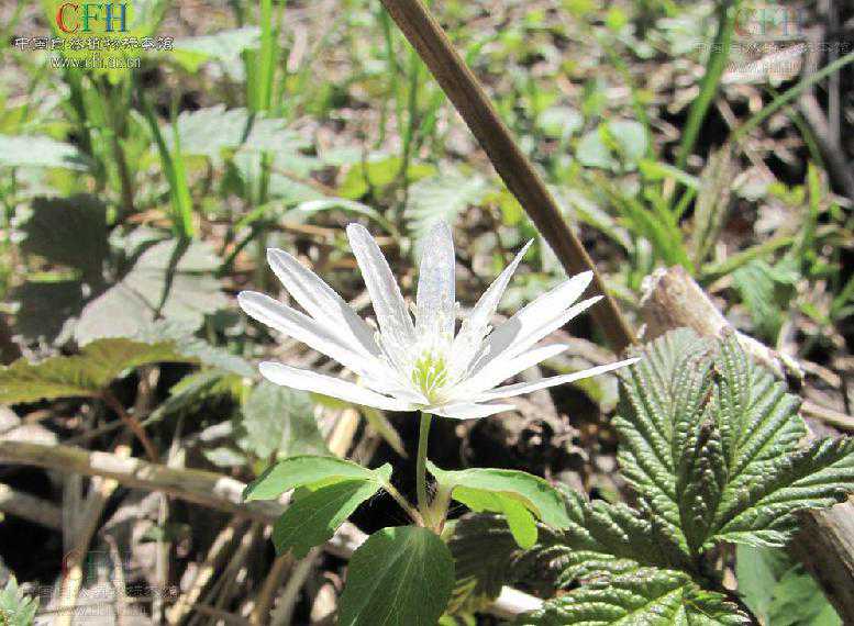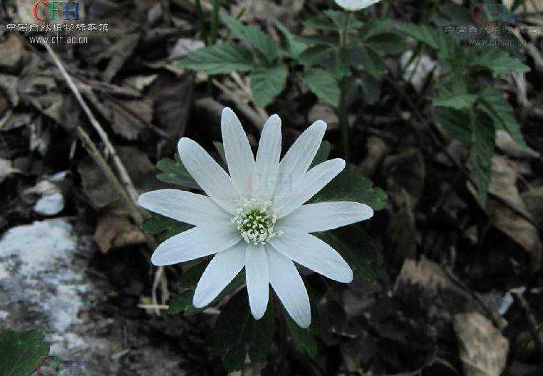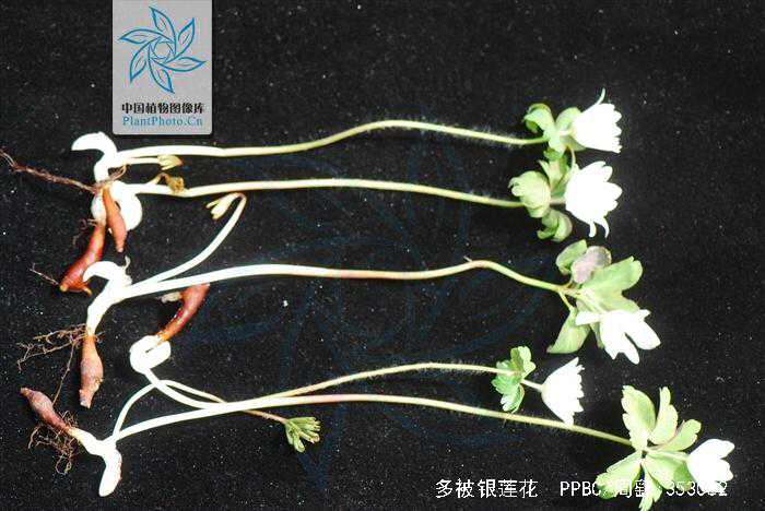 【植物形态】多年生草本,高10~25厘米。根茎横走或斜生,呈细纺锤形,长1.5~3厘米,直径3~8毫米,暗褐色,顶端具数枚黄白色大型膜质鳞片。基生叶为3出复叶,通常1枚,小叶具柄,小叶片通常3深裂或近全裂,裂片倒卵形,3裂或缺刻状,先端钝,基部楔形,两面无毛或仅基部疏被长柔毛。花茎单一,直立,疏被长柔毛,较基生叶高,有叶状总苞片3枚,总苞片长圆形或狭倒卵形,具数个缺刻状圆齿,花单朵,顶生,萼片花瓣状,长圆形,10~15片,白色,外侧略带紫晕,两面无毛,雄蕊多数,雌蕊多数,离生,子房被长柔毛,花柱稍弯,无毛。瘦果,具细毛。