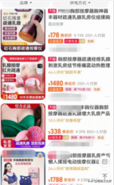 ▲网络上也有月销量超千笔电动胸部按摩仪