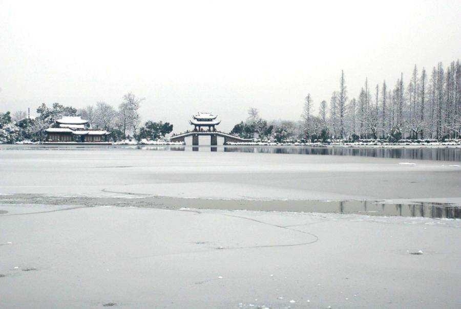 我一个大姐跟我说她小的那辰光,每到大雪初晴寒冻时西湖也会结冰,就会有人在湖面溜冰,最厚的那年还有人把车从少年宫开到了三潭印月。