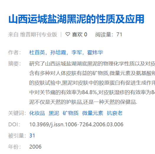 研究人员发现,来自中国运城盐湖的黑泥,不管是对皮肤弹性,还是对抗衰老,都是好处多多!