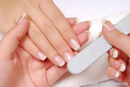 第五步,磨甲。继续用海绵条磨甲面