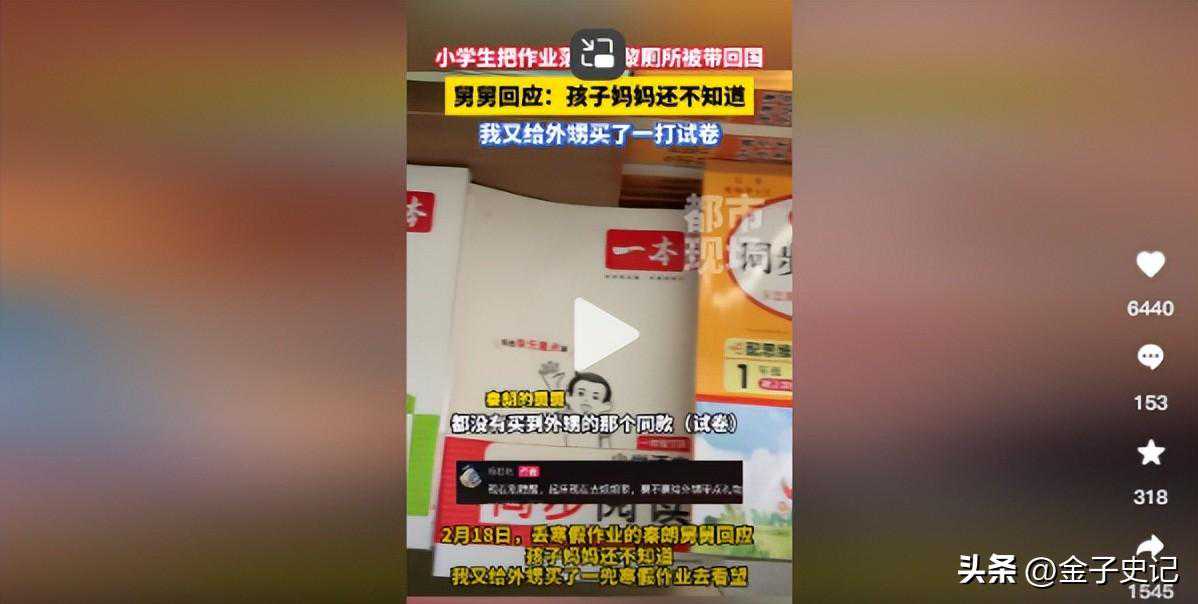这个网红觉得肯定是秦朗小朋友快要开学了,但是作业一点还没写,然后故意丢在厕所的。