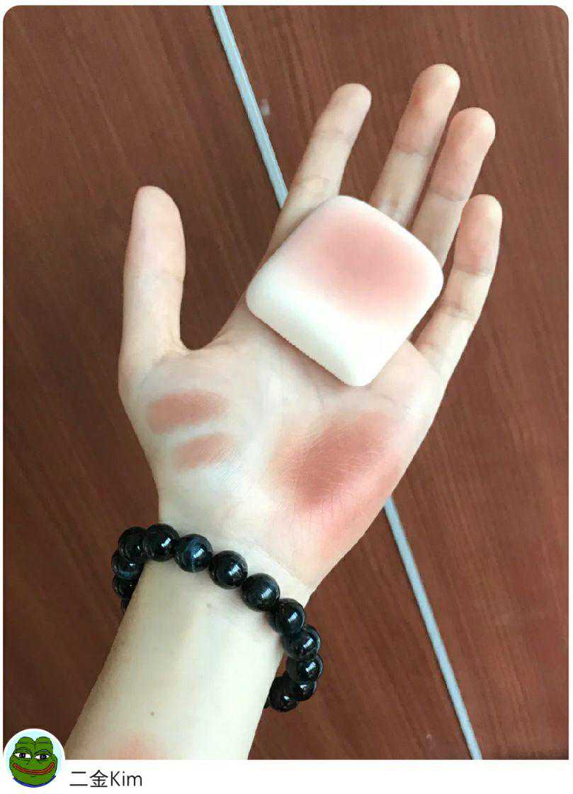 相比于前面几款腮红,它的橘色调更重,但是没有荧光感,黄黑皮涂起来显白不显黑。