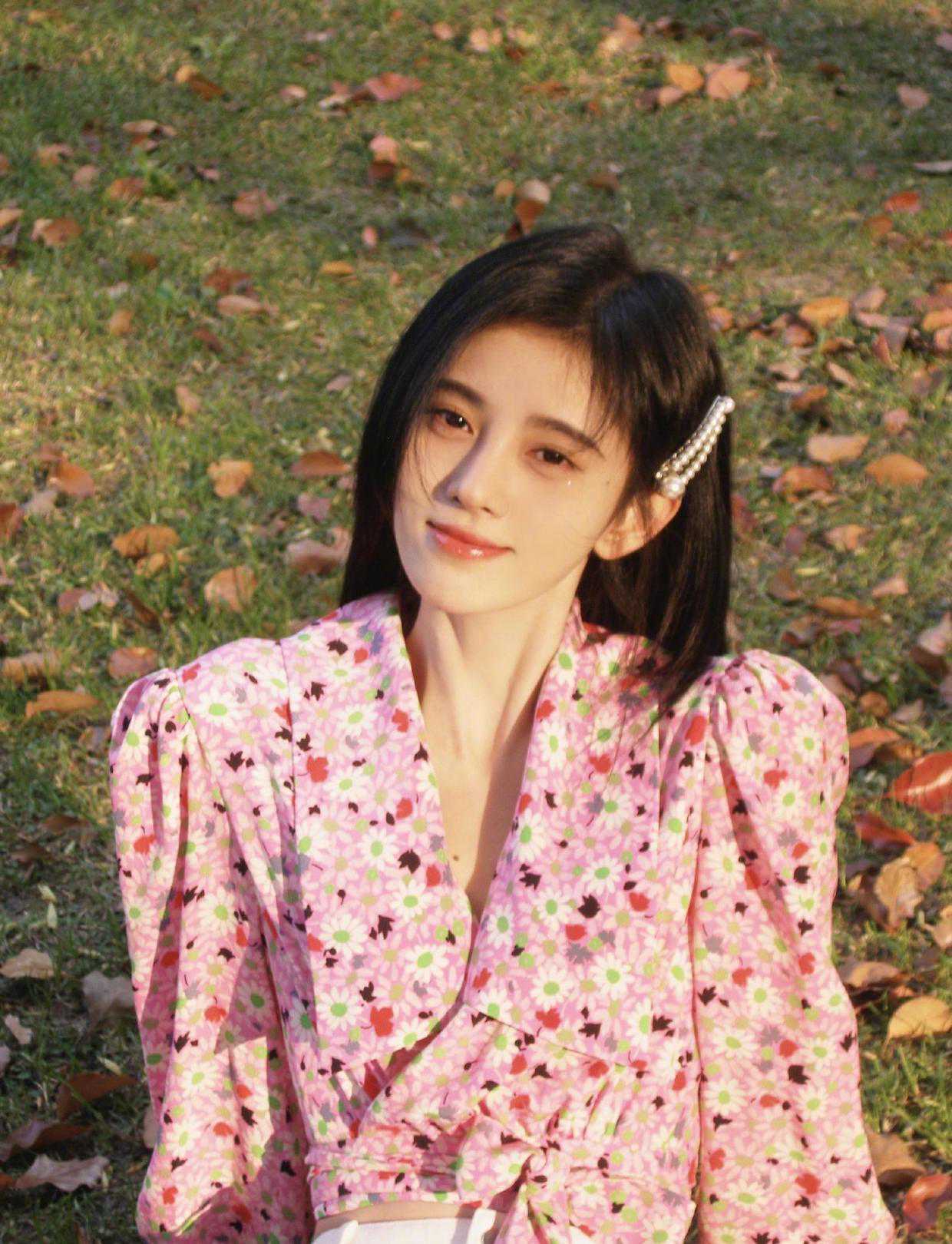 3.充满风情的印花在挑选印花的时候,也可以结合自己的喜好,选择一些充满风情的印花,欧阳娜娜的气质高级,她就选择了法式风格的设计,与衬衫结合,娃娃领+蕾丝看起来很乖巧,在学校读书的少女也可以放心使用。