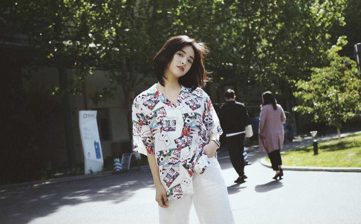 如果比较年轻的话,就可以在穿法上进行一些革新,像谭松韵的气质可爱俏皮,她就选择了宽松的衬衫,在衣摆进行了打结,增添了几分随性慵懒的美感。