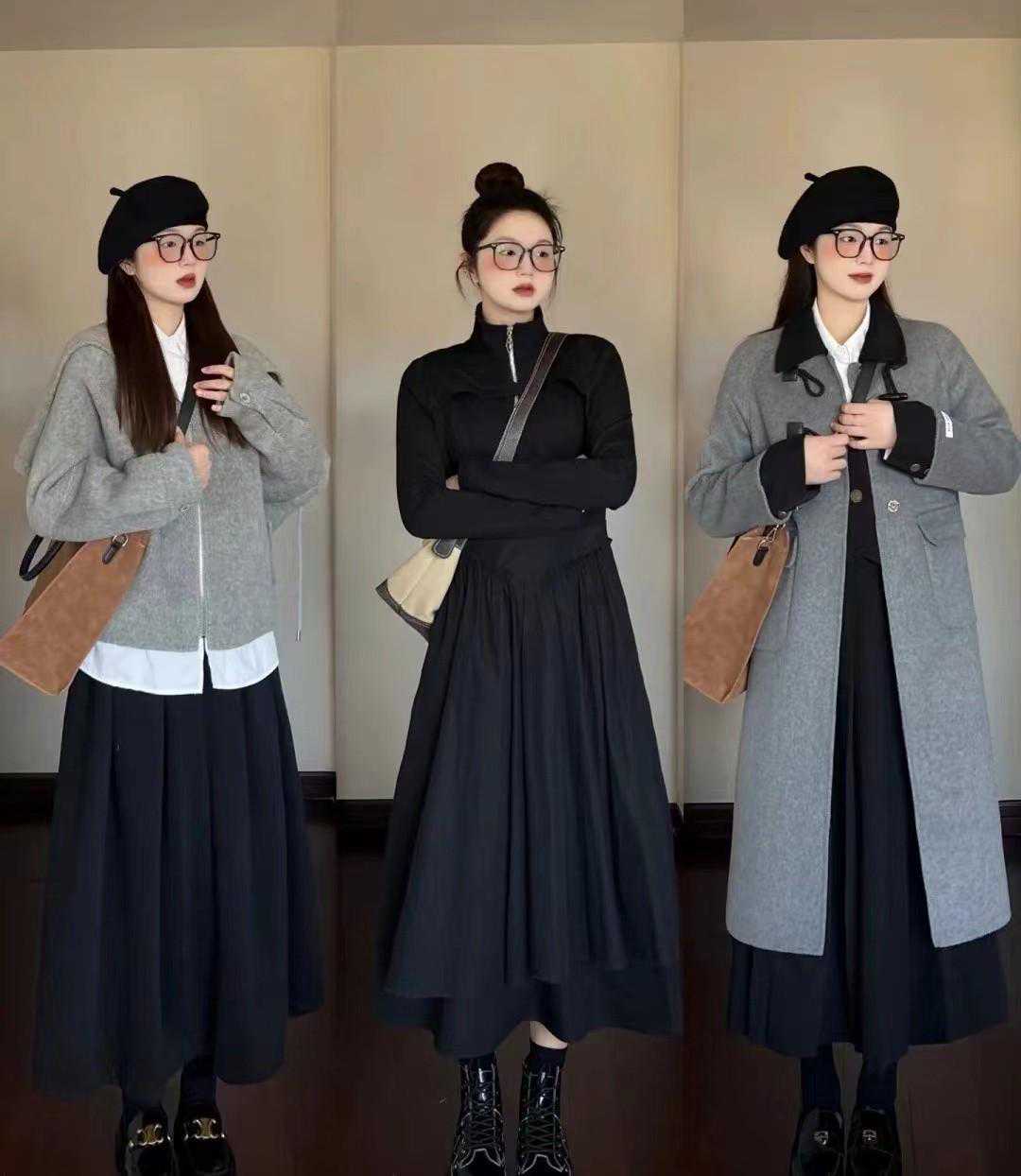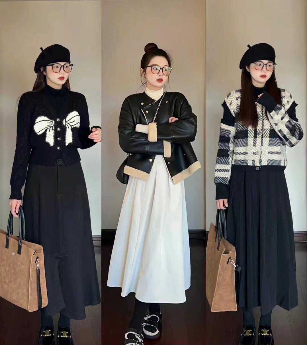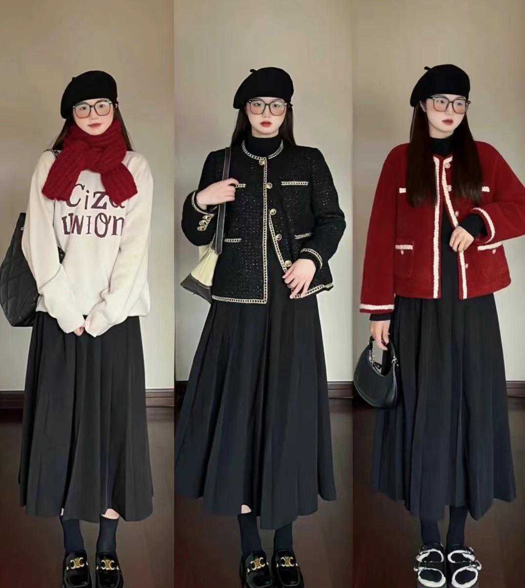 冬季叠穿搭配既好看又保暖,一件黑色的半身裙让这一身的搭配看起来更加有层次感,上班休闲皆可搭配!