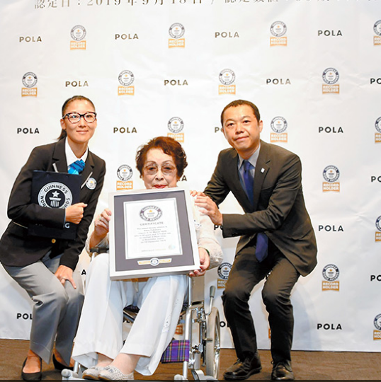 10月1日,日本99岁老人福原菊荣被吉尼斯世界纪录认证机构认证为世界“最高龄美容顾问”,已经工作近60年的她坐着轮椅接受了这份证书。